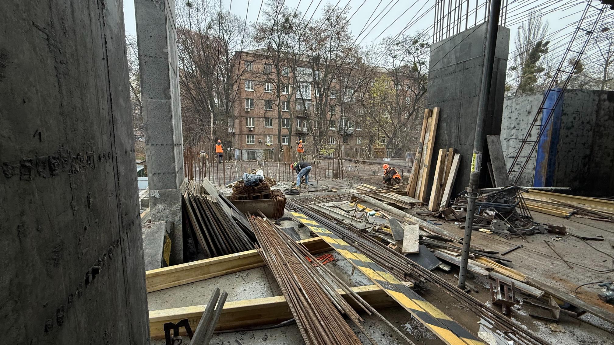 Бетонування вертикальних конструкцій 1 поверху – 80%